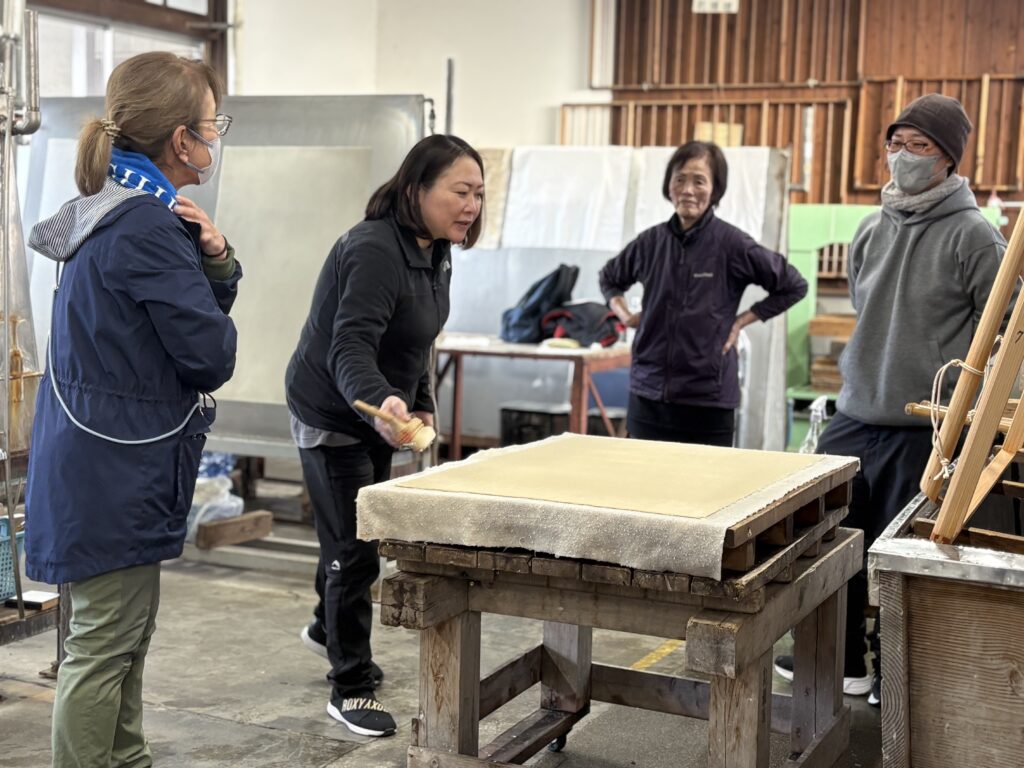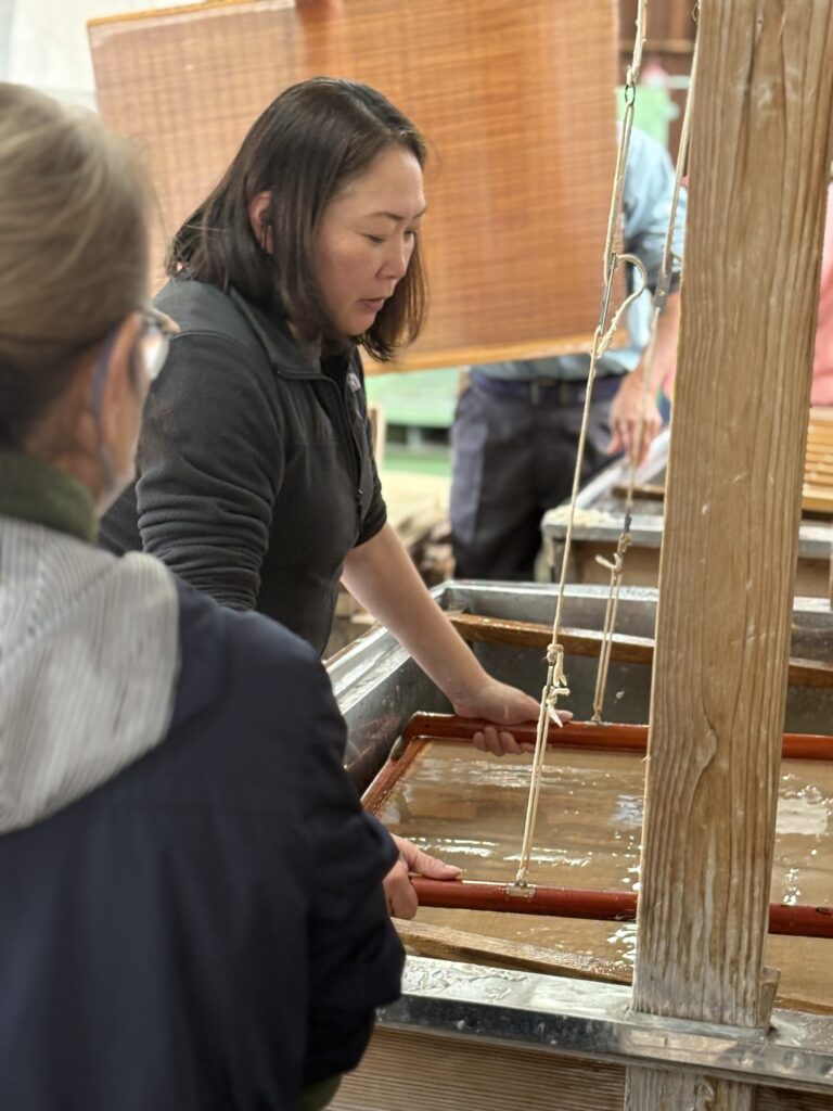 通常は一般公開していない細川紙技術者協会研修員による紙漉き・紙干し・かずひきをご覧いただきました。